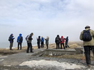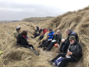 Det blev til en spændende og indholdsrig tur, hvor vi hørte om hvordan 6 fattige fiskerfamilier fra Agger i 1864 var vandret langs kysten til Lyngby, for at finde et bedre område at kunne slå sig ned